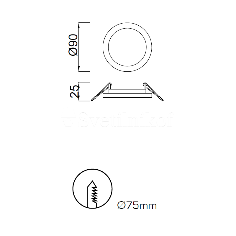 Height min, mm 25 Height max, mm 25 Diameter, mm 90 Mortise hole diameter (mm )80